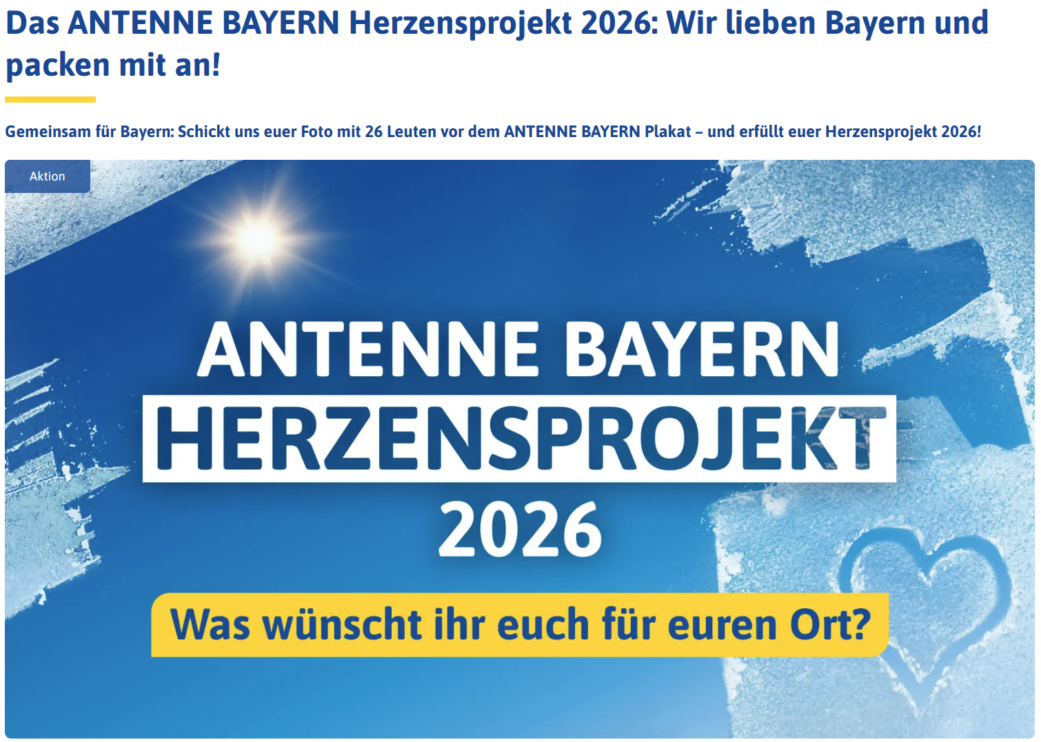 Wir machen mit bei der großen Aktion „Herzensprojekt 2026“ von ANTENNE BAYERN – und dafür brauchen wir euch!