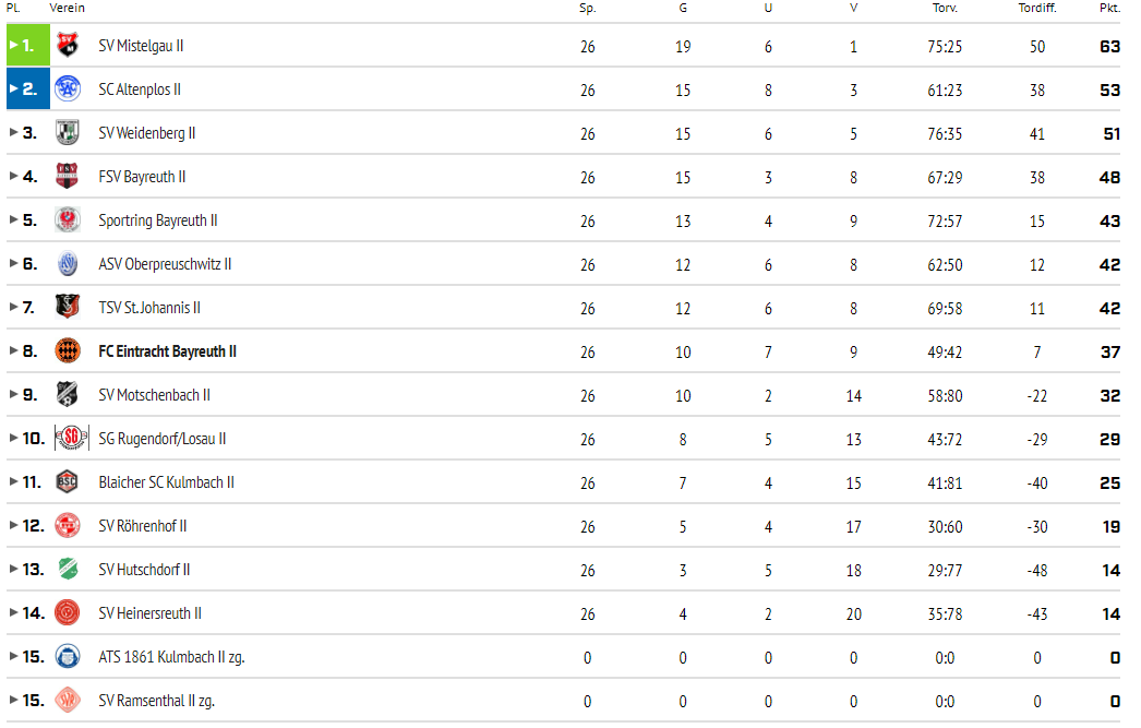 Tabelle der Saison 2021 / 22