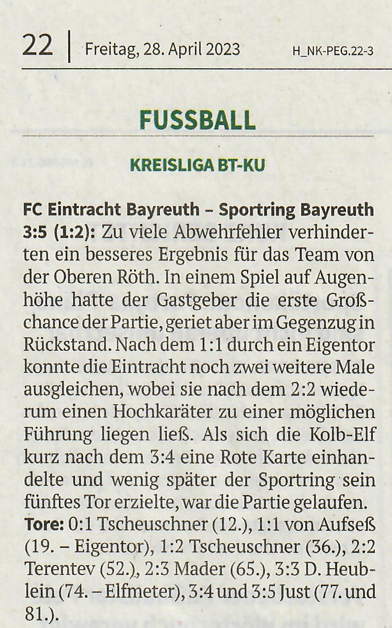 26.04.2023 FC Eintracht - Sportring Bayreuth 3 : 5 ( 1:2 )