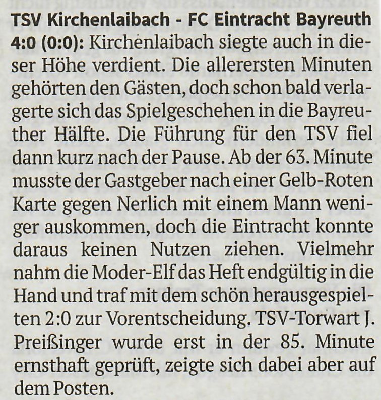 Nordbayerischer Kurier vom 23.05.2023 0 : 1 (37.) Marius Metz 1 : 1 (53.) Felix Schneider 2 : 1 (88.) Florian Mösch