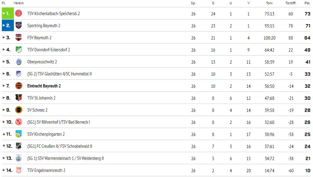 Tabelle der Saison 2021 / 22