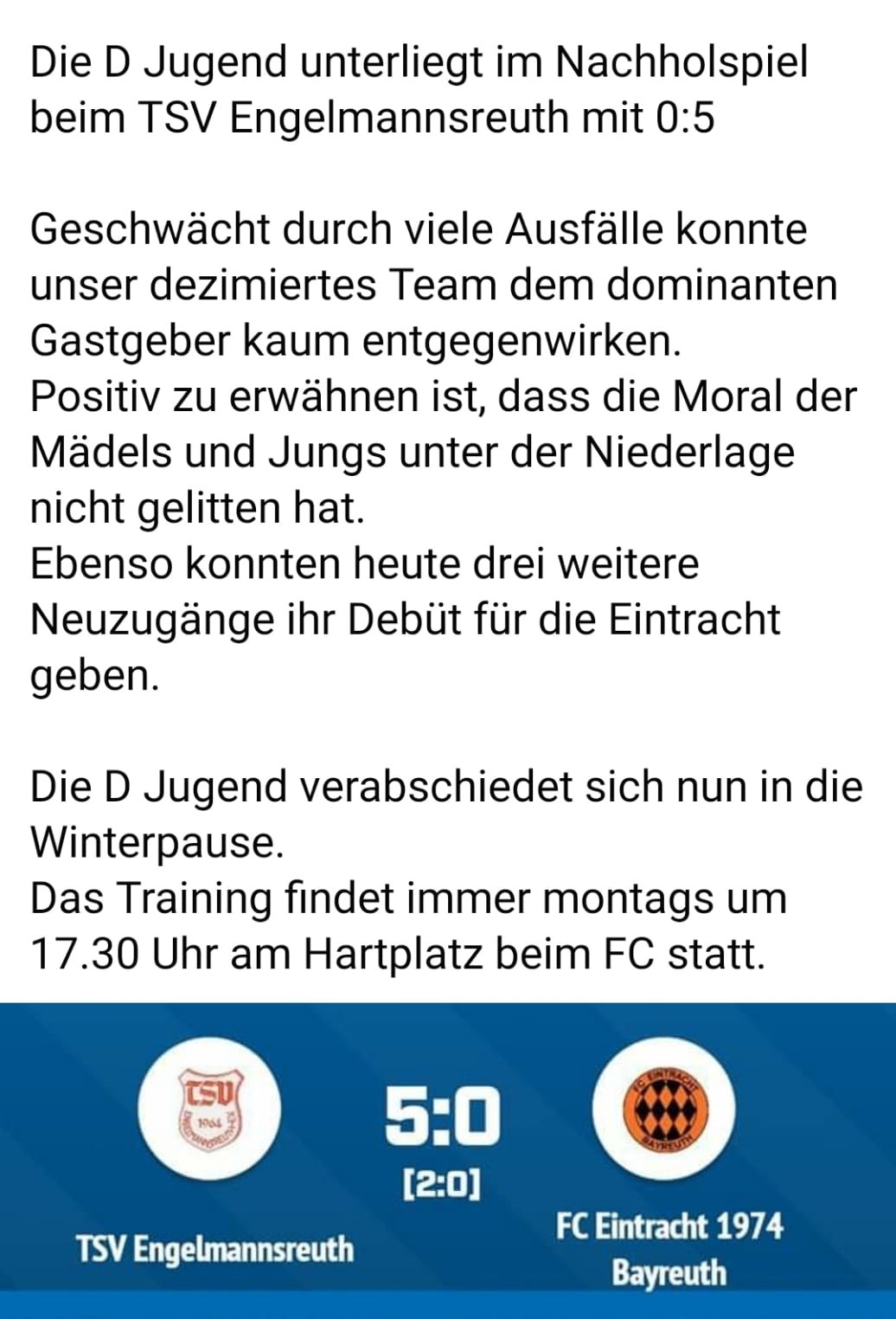 Die D-Jugend des FC Eintracht Bayreuth wünscht besinnliche Weihnachten und einen guten Rutsch ins Jahr 2023 !
