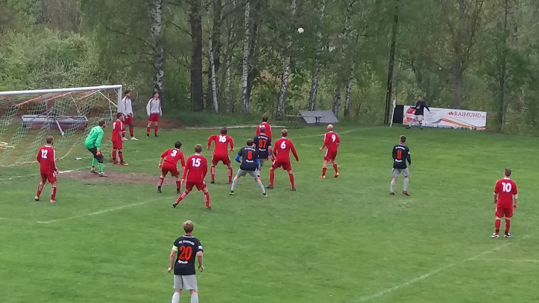 Die Gastgeber hatten auch in der 84.Minute noch großen Respekt vor unseren spielfreudigen Angreifern; 10 Spieler der Gastgeber verteidigen ihr Tor bei einem Eckstoß