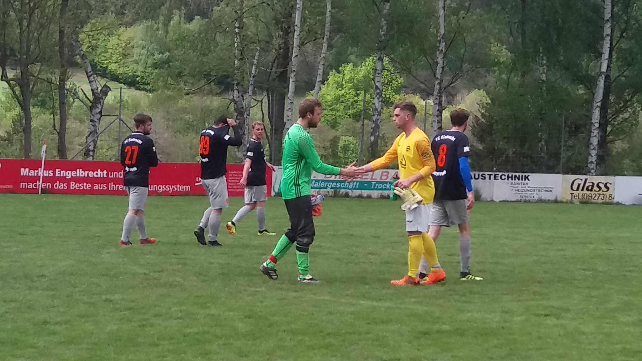 SVR-Torhüter Florian Dietel und Eintracht-Schlußmann Daniel Becker mit sportlicher Geste
