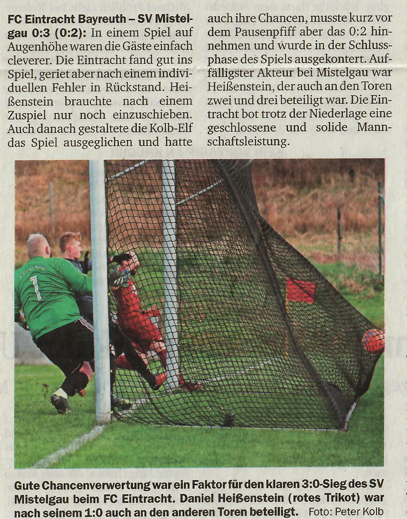 Nordbayerischer Kurier vom 4.April 2022 0 : 1 (12.) Daniel Heißenstein 0 : 2 (45.) Manuel Rach 0 : 3 (85.) Nico Boog
